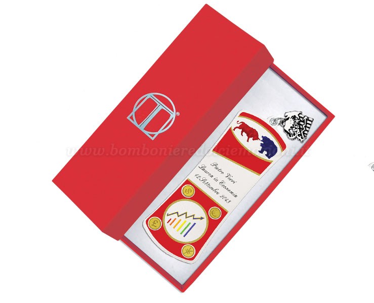 Bomboniera laurea biologia economia segnalibro personalizzato con scatola