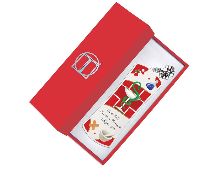 Bomboniera laurea farmacia segnalibro personalizzato con scatola