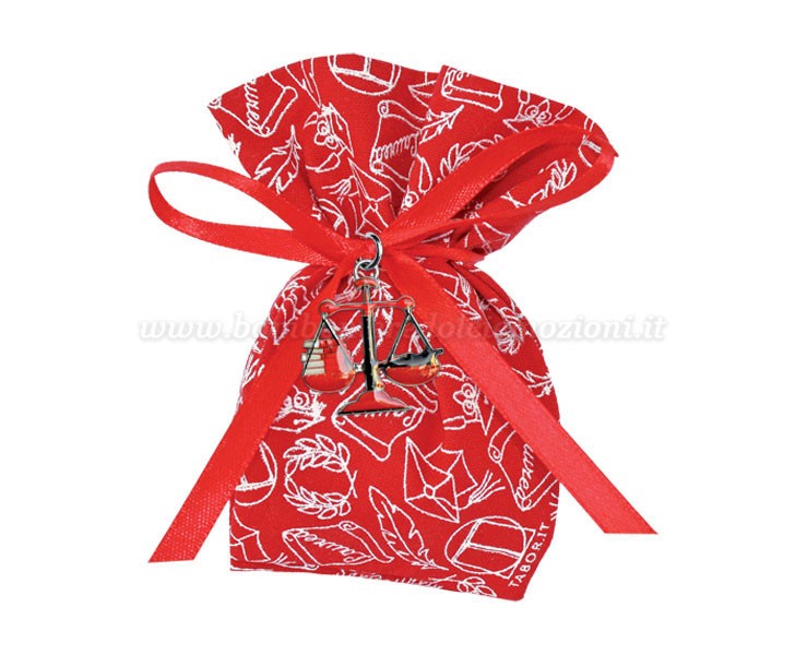 Bomboniera Laurea Giurisprudenza ciondolo in bagno argento bilancia smaltato con sacchetto