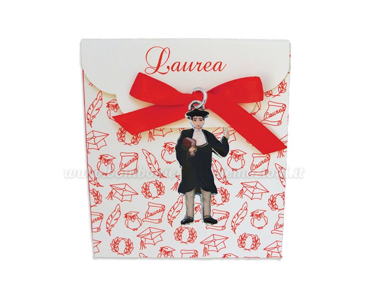 Bomboniera Laurea Giurisprudenza Ciondolo in bagno argento avvocato uomo smaltato con scatolina portaconfetti