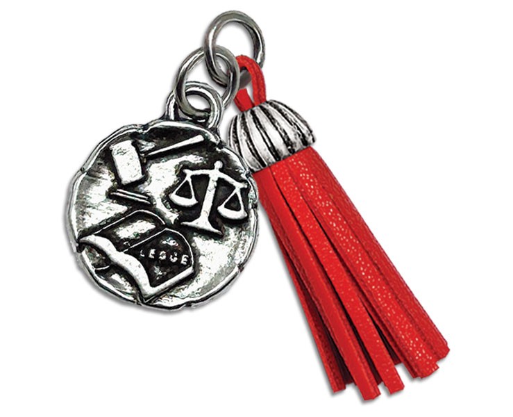 Bomboniera Laurea Giurisprudenza ciondolo giurisprudenza nappa rossa in bagno argento con sacchetto opzionale