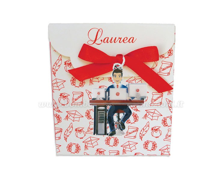 Bomboniera Laurea Informatica Ciondolo in bagno argento informatica uomo smaltato con scatolina portaconfetti