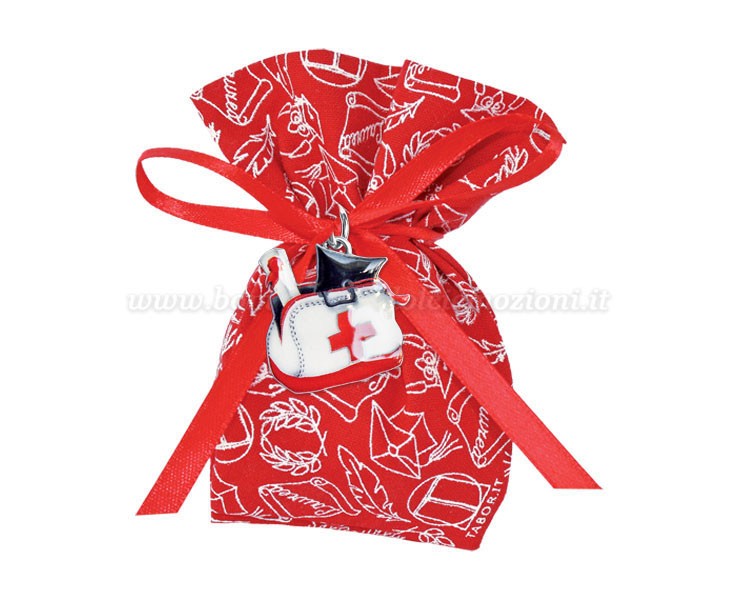 Bomboniera Laurea Medicina ciondolo in bagno argento borsa dottore smaltato con sacchetto