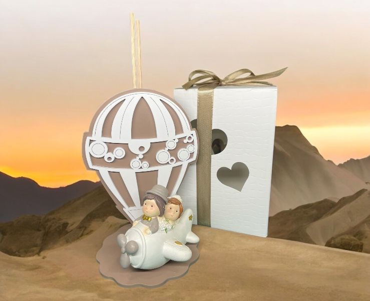Bomboniera Matrimonio Profumatore Mongolfiera in Legno con Coppia  Sposi Assortiti in Tre Modelli Macchina-Aereoplano-Vespa zoom_in