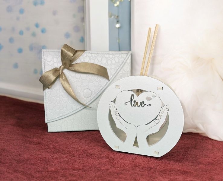 Bomboniera Matrimonio Mariella Martini profumatore mani cuore scritta love grande