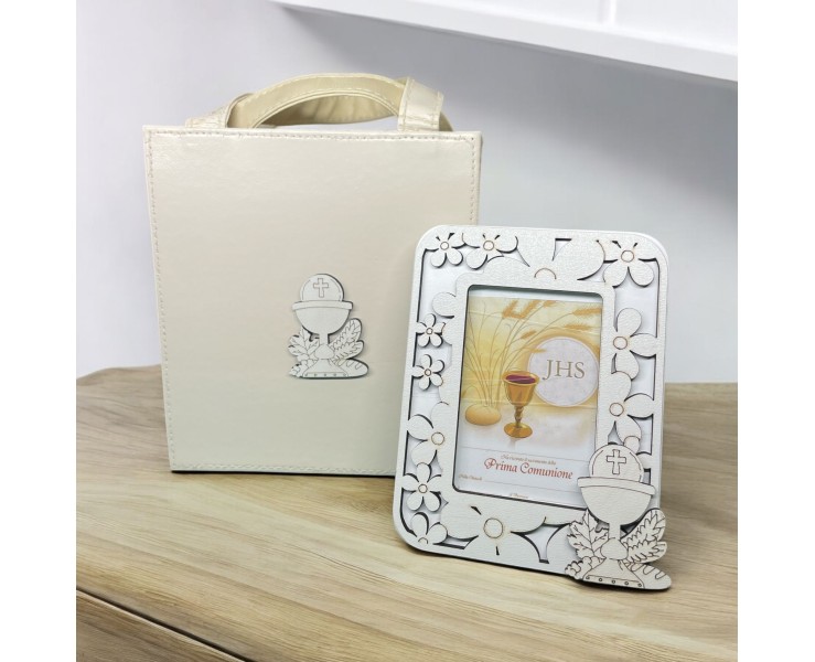 Bomboniera Prima Comunione Portafoto fiorito con simbolo calice comunione