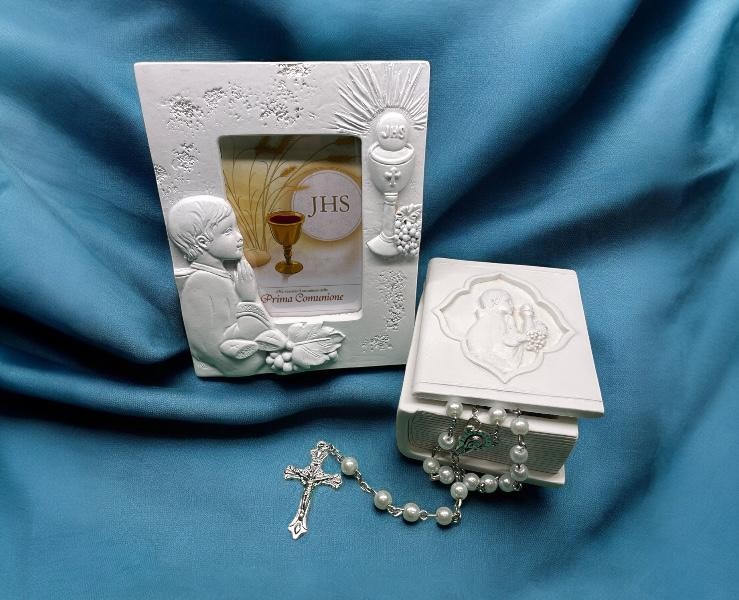 Bomboniera Prima Comunione SET Portafoto - Porta Rosario - Rosario Bimbo