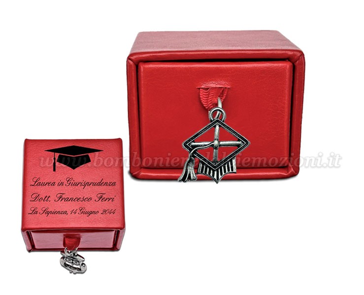 Bomboniera Laurea Bomboniera Laurea Scatolina Rossa con Ciondolo Tocco
