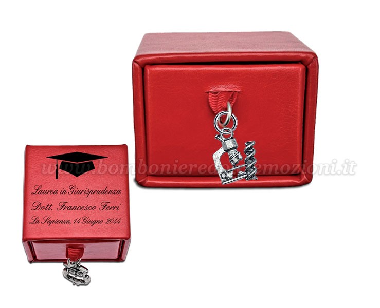 Bomboniera Laurea Bomboniera Laurea Scatolina Rossa con Ciondolo Microscopio
