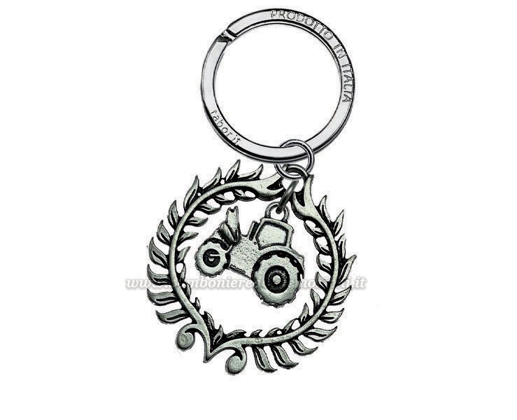 Un elegante portachiavi con ciondolo a forma macchinario agricolo all'interno di una corona d’alloro. Perfetto come bomboniera per laureati in Agraria, è un regalo raffinato e significativo.