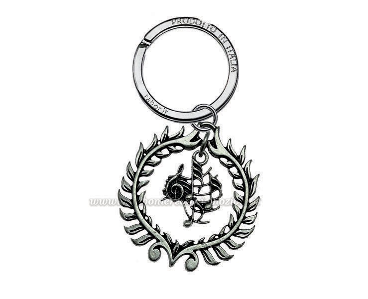 Un elegante portachiavi con ciondolo raffigurante le note musicali all'interno di una corona d’alloro, simbolo di precisione e armonia. Perfetto come bomboniera per laureati in in tutte quelle facoltà che hanno a che fare con l'arte, è un regalo raffinato e significativo.
