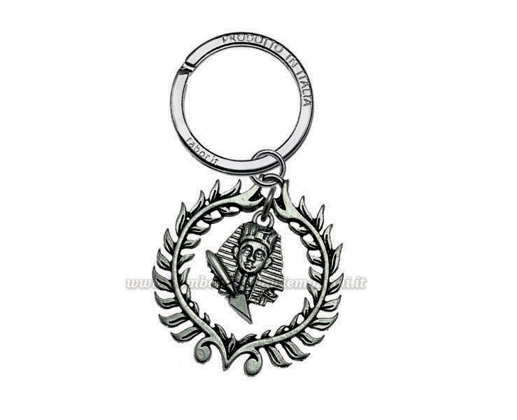 Un elegante portachiavi con ciondolo raffigura la cazzuola (strumento simbolo dell'archeologo) e una maschera funeraria egizia all'interno di una corona d’alloro. Perfetto come bomboniera per laureati in Archeologia e Storia, è un regalo raffinato e significativo.