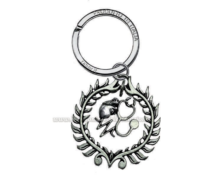 Un elegante portachiavi con ciondolo raffigurante cuore, un elettrocardiogramma (ECG) e uno stetoscopio all'interno di una corona d’alloro. Perfetto come bomboniera per laureati in Cardiologia, Medicina e altre facoltà mediche, è un regalo raffinato e significativo.