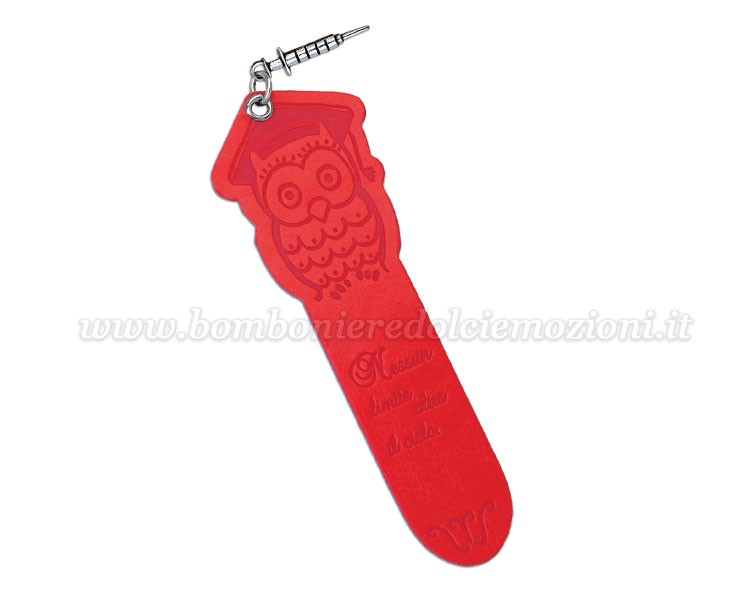Bomboniera Laurea – Segnalibro Gufo Rosso con Ciondolo Siringa