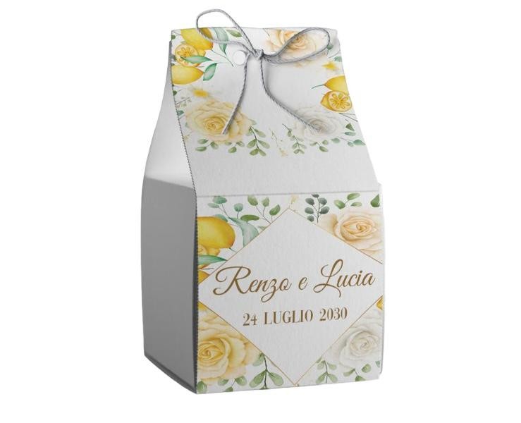 Scatolina porta confetti personalizzata quadrata decoro limoni