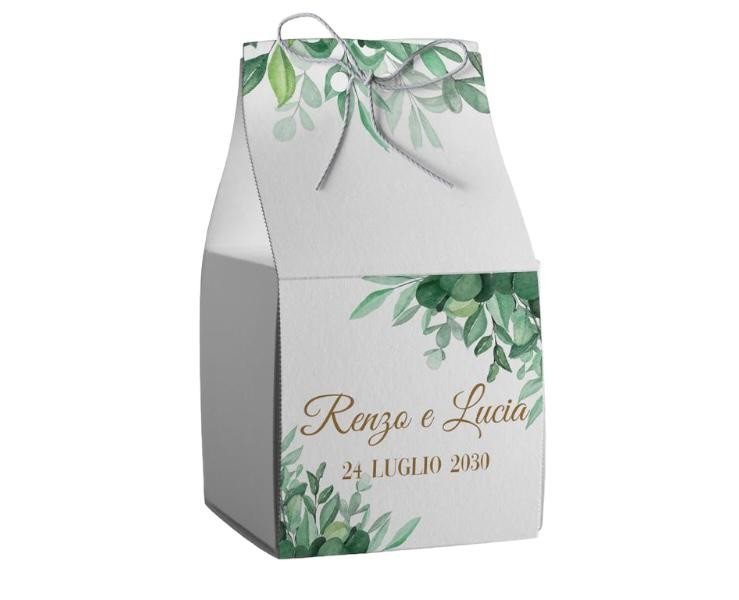 Scatolina porta confetti personalizzata quadrata decoro foglie verdi