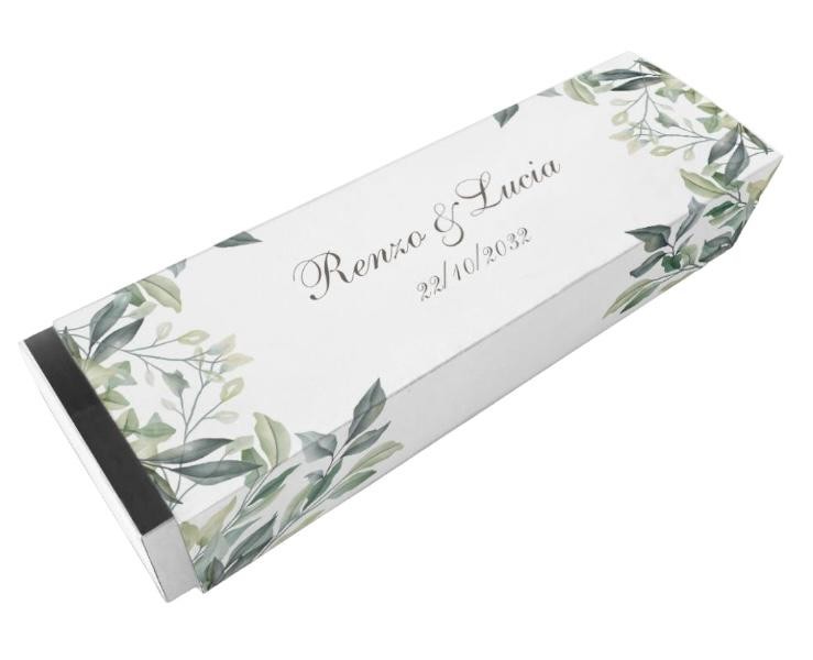 Scatolina porta confetti personalizzata rettangolare decoro foglie verdi