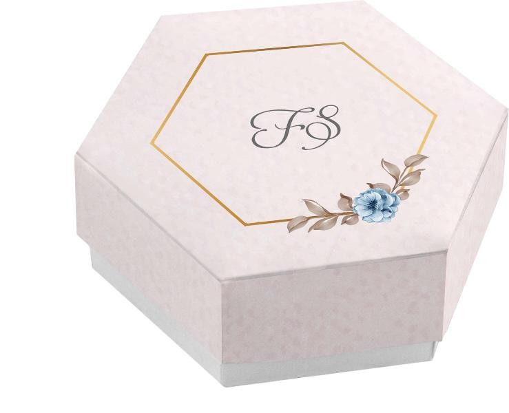 Scatolina porta confetti personalizzata esagonale decoro floreale blu