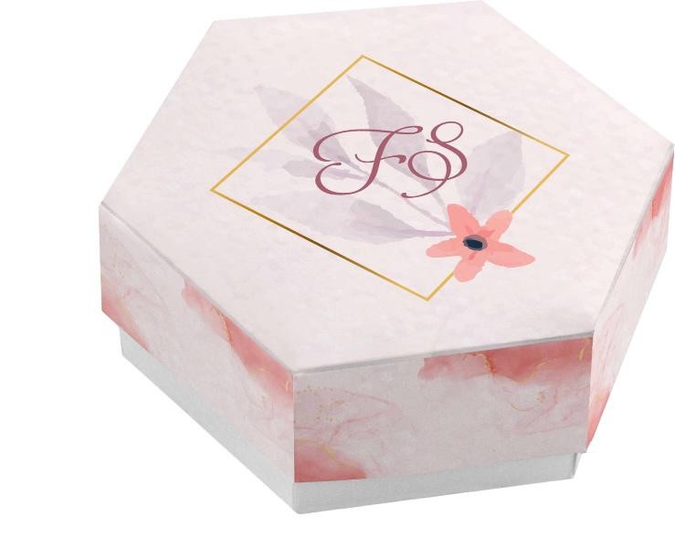 Scatolina porta confetti personalizzata esagonale decoro floreale con fantasia rosa
