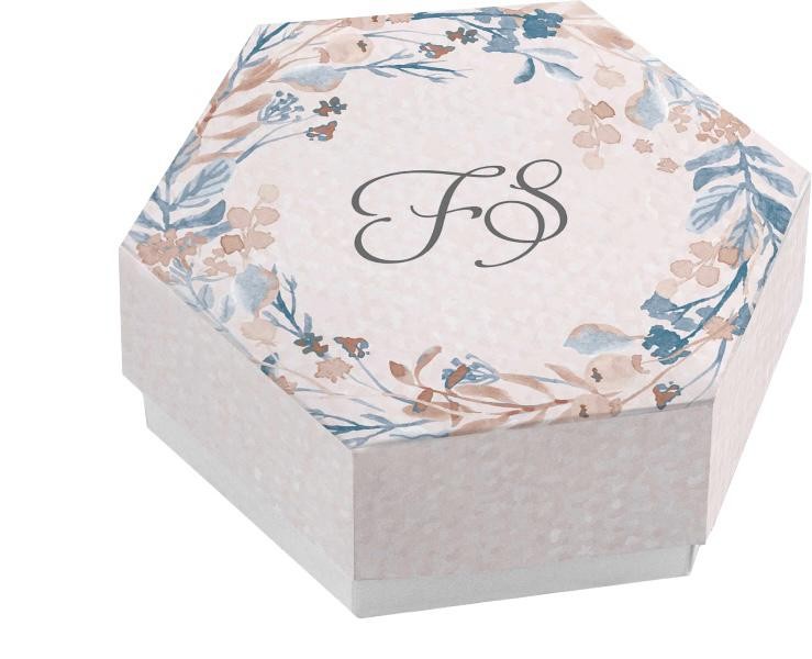 Scatolina porta confetti personalizzata esagonale decoro floreale blu e tortora