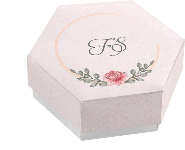 Scatolina porta confetti personalizzata esagonale decoro floreale rosa con foglie