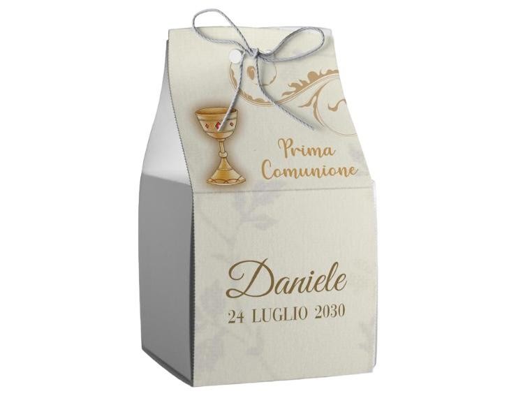 Scatolina porta confetti personalizzata quadrata decoro calice con ostia pane e uva