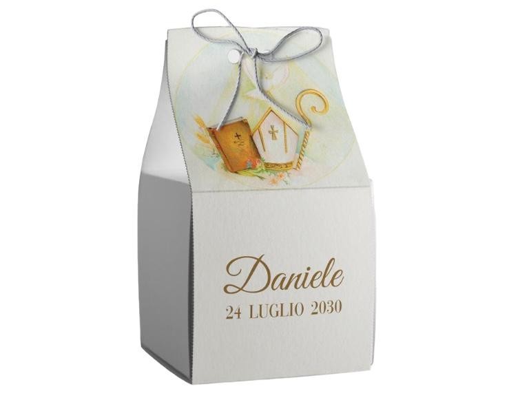 Scatolina porta confetti personalizzata quadrata decoro bibbia e pastorale