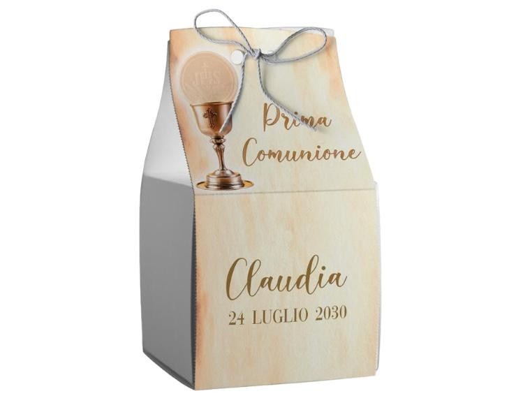 Scatolina porta confetti personalizzata quadrata decoro calice e ostia