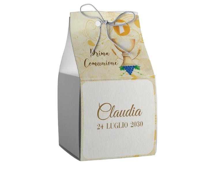 Scatolina porta confetti personalizzata quadrata decoro calice croce uva