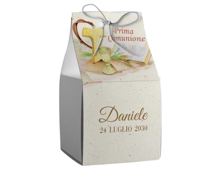 Scatolina porta confetti personalizzata quadrata decoro calice croce bibbia