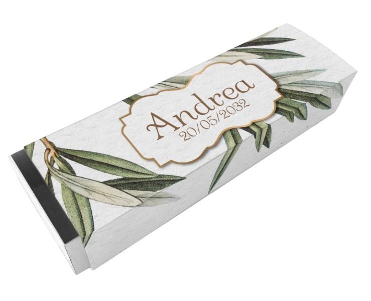 Scatolina porta confetti personalizzata rettangolare decoro rami ulivo
