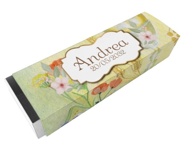 Scatolina porta confetti personalizzata rettangolare decoro floreale e grano