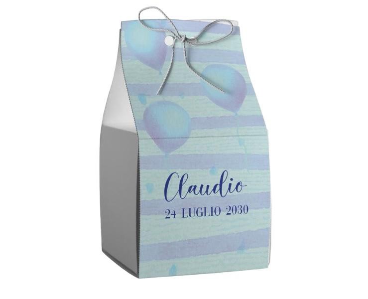 Scatolina porta confetti personalizzata quadrata blu decoro palloncini