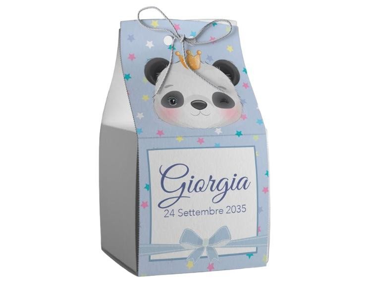 Scatolina porta confetti personalizzata quadrata blu con panda