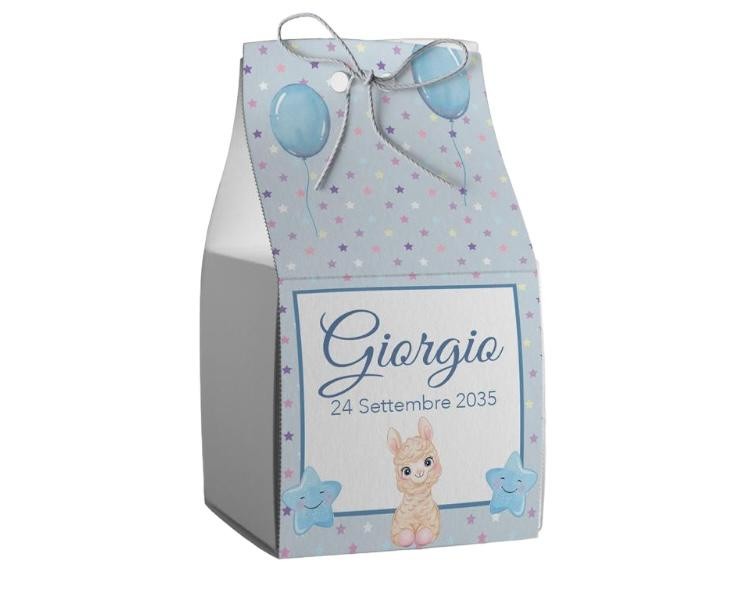 Scatolina porta confetti personalizzata quadrata blu con lama e palloncini
