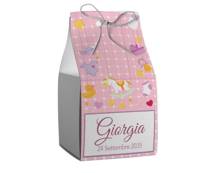 Scatolina porta confetti personalizzata quadrata rosa decoro giochi vari