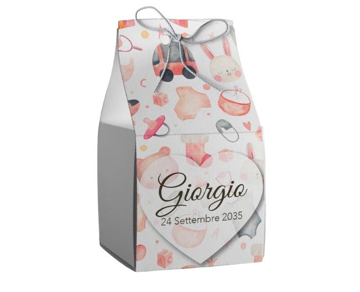 Scatolina porta confetti personalizzata quadrata rosa decori vari