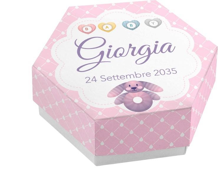 Scatolina porta confetti personalizzata esagonale rosa con coniglietto