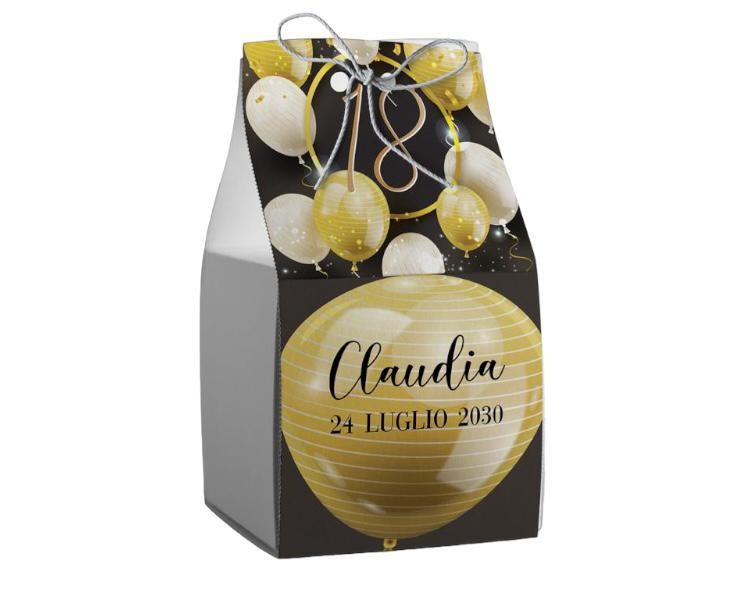 Scatolina porta confetti personalizzata quadrata nero bianco 18 anni con palloncini