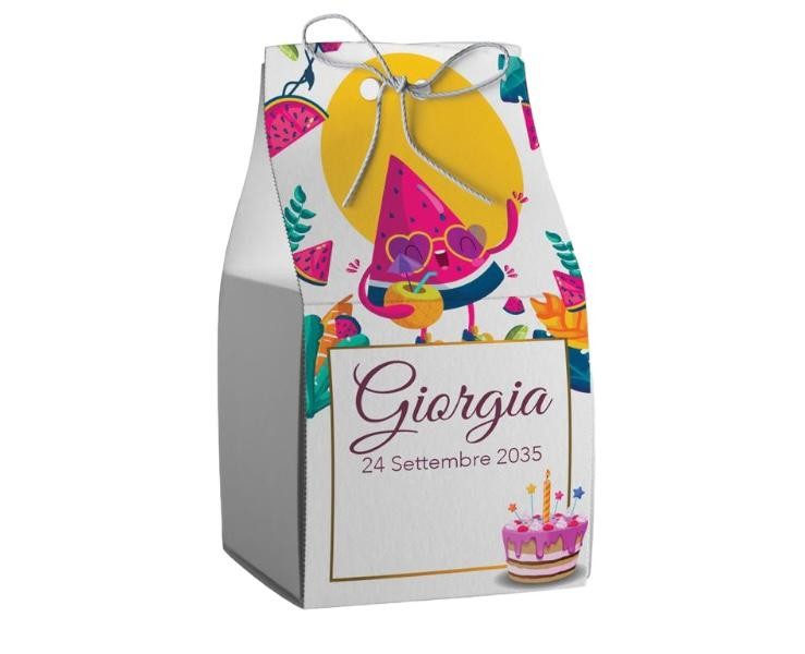 Scatolina porta confetti personalizzata quadrata con fantasia frutta