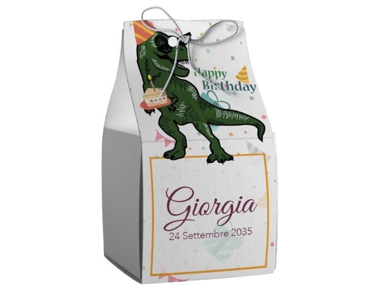 Scatolina porta confetti personalizzata quadrata dinosauro