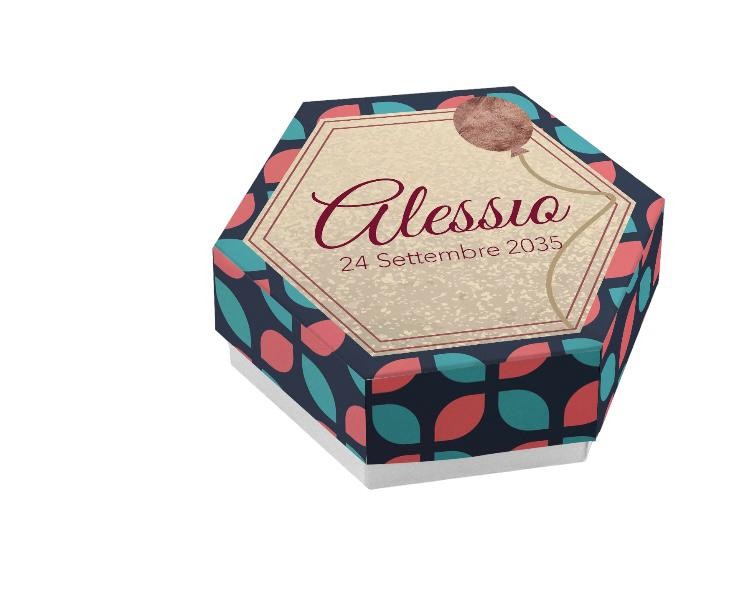 Scatolina porta confetti personalizzata eagonale blu rosa con palloncino