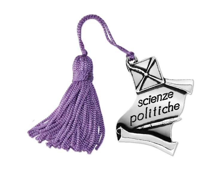 Bomboniera Laurea scienze politiche donna - Ciondolo in bagno argento Smaltato con Scatola Rossa
