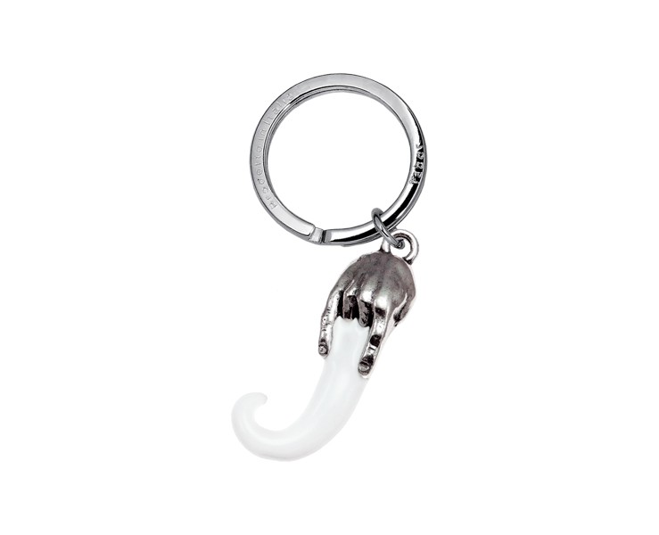 Bomboniera Portafortuna - Portachiavi Corno con Mano(gesto corna) Smaltato Bianco