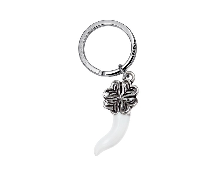 Portachiavi Corno quadrifoglio smaltato bianco
