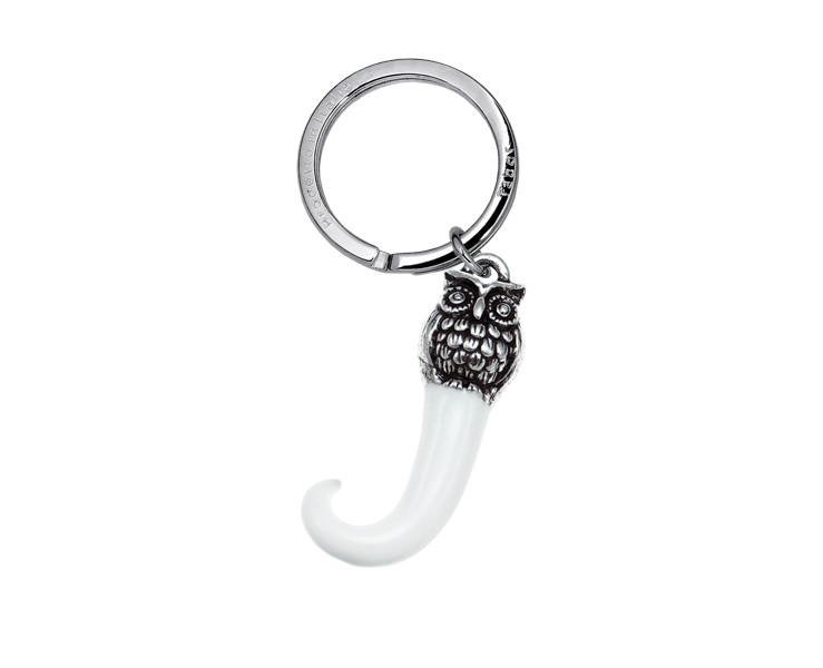 Bomboniera Portafortuna - Portachiavi Corno con Gufo Smaltato Bianco