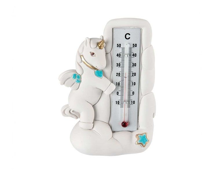 Bomboniere Battesimo Bongelli Pegaso cavallino termometro celeste
