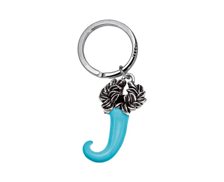 Portachiavi Corno corona alloro smaltato celeste