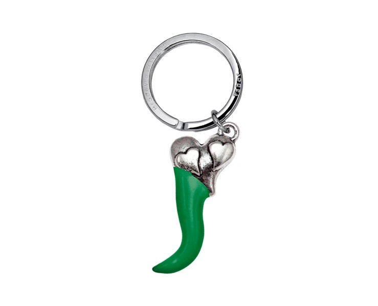 Portachiavi Corno cuore smaltato verde