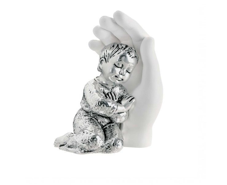 Bomboniere Battesimo Bongelli Mano grigia con neonato bianco